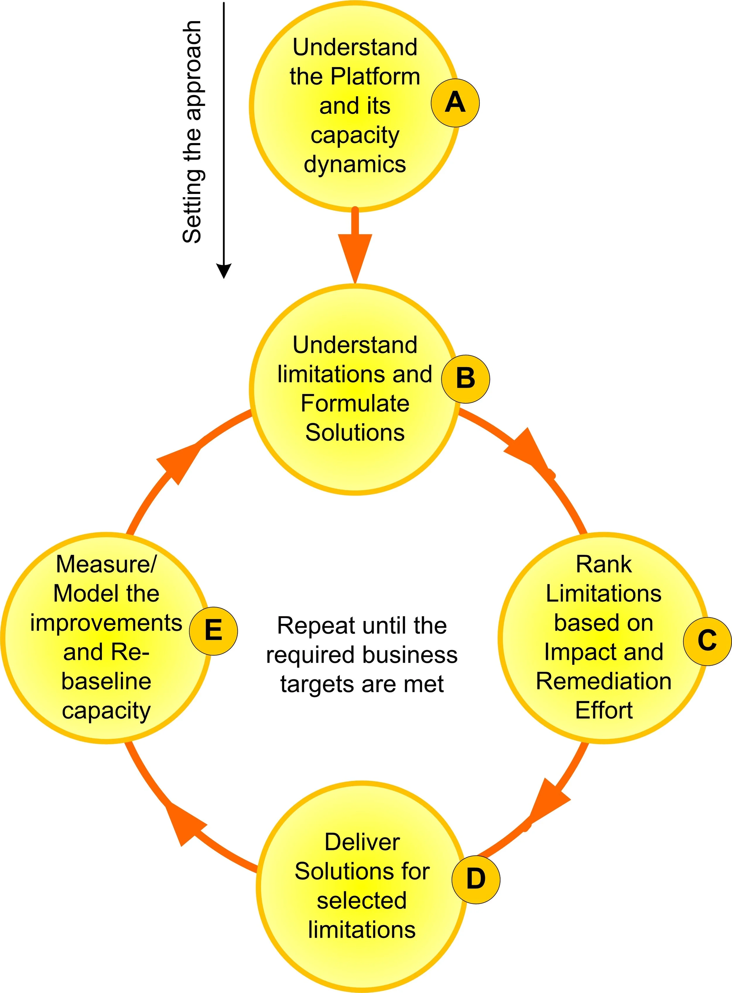 When tackling a complex platform, unless a methodical approach is adopted, fulfilling the front to back capacity becomes very difficult. In order to address the five principles discussed earlier, the first step is to assess and understand the different capacity impacting dimensions and their impact. Figure below shows three dimensions that need to be understood.